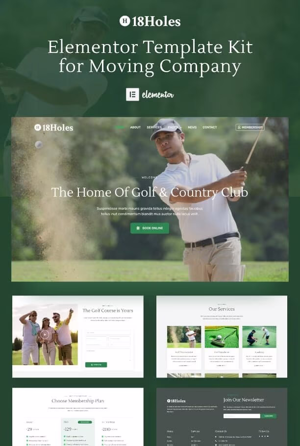 18Holes is an Elementor website template kit that was designed & developed specifically to help you create online presence for your golf & country club business using WordPress and Elementor plugin.